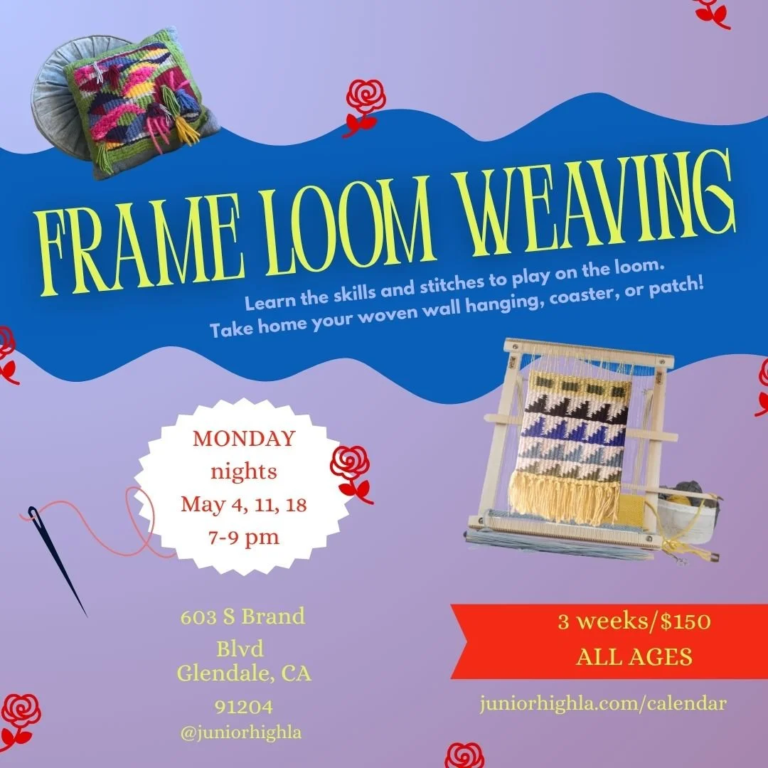 All materials for your project will be included, but feel free to bring your own yarn or supplies to play with. At the end of 3 sessions you will be able to take home your woven wall hanging, placemat, or patch.