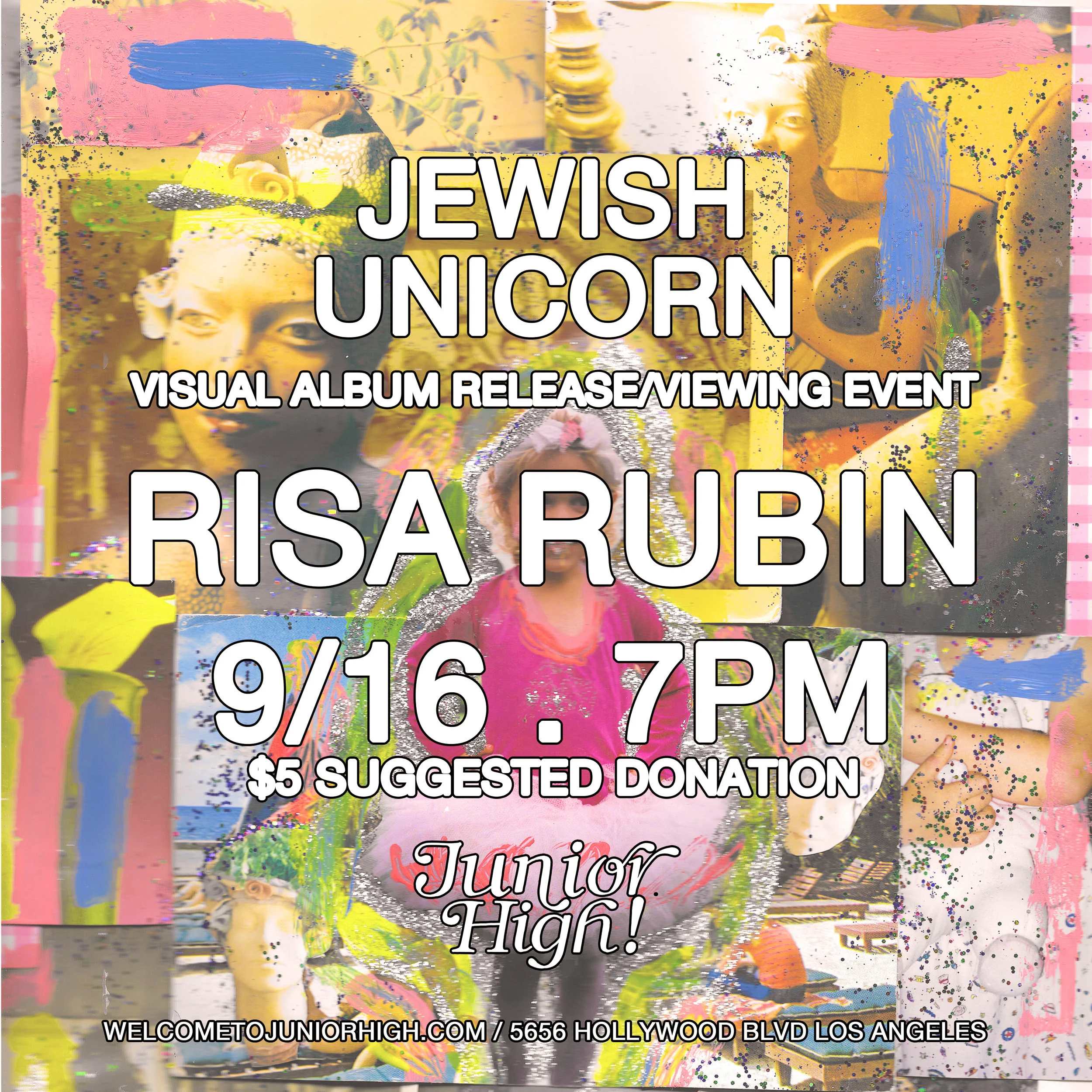 ART + FILM / $5 SUGGESTED DONATION / ALL AGES / Join us for the release of Los Angeles musician Risa Rubin's new visual album, Jewish Unicorn. We'll be screening each track with accompanying video on VCRs throughout the space and tapes of the record will be available for sale. Risa performs at 8pm.
