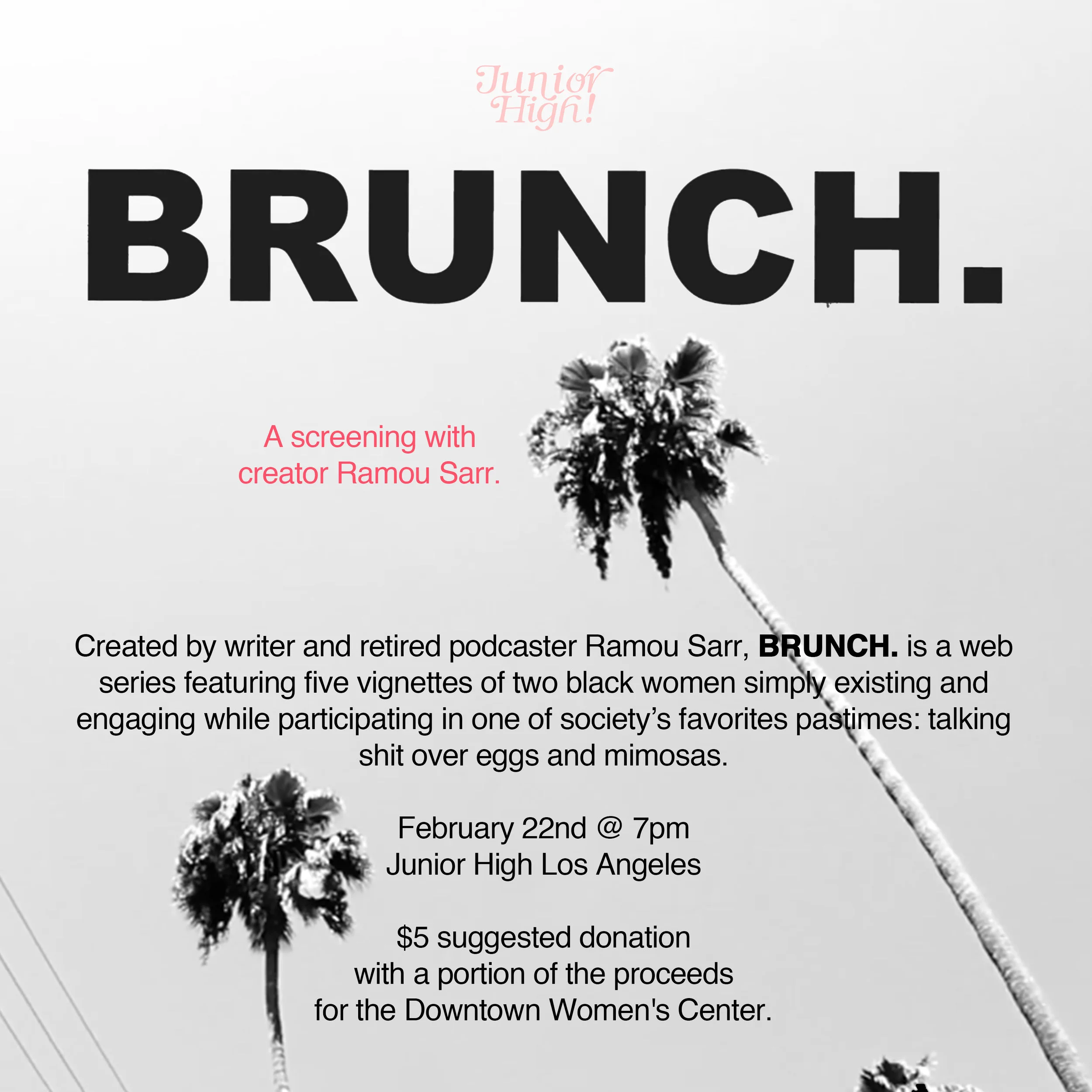 FILM / $5 SUGGESTED DONATION / ALL AGES / Created by writer and retired podcaster Ramou Sarr, BRUNCH. is a web series featuring five vignettes of two black women simply existing and engaging while participating in one of society’s favorites pastimes: talking shit over eggs and mimosas.
