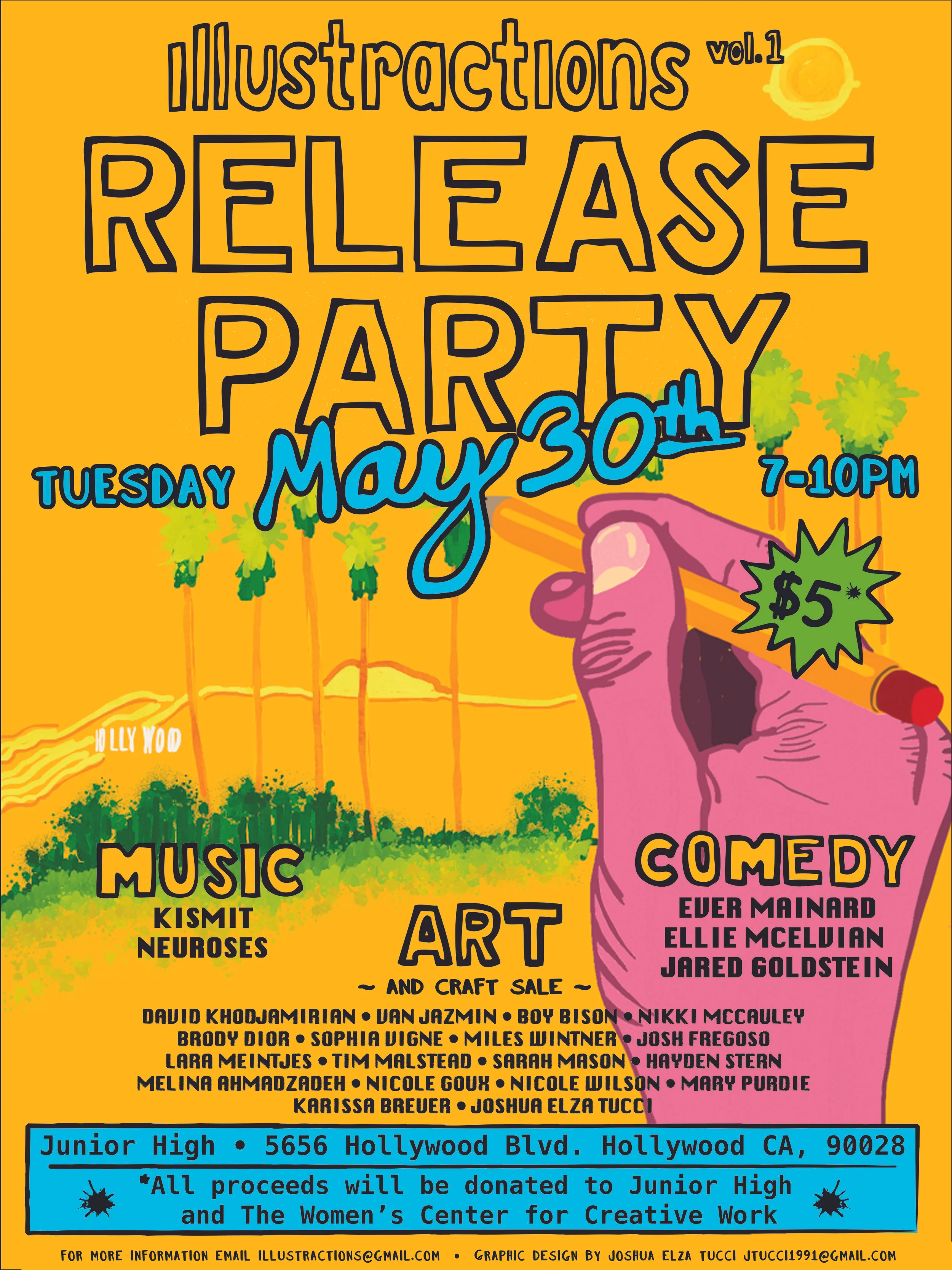 COMEDY + ART + MUSIC / $5 SUGGESTED DONATION / ALL AGES / Come and celebrate the release of a new zine, ILLUSTRACTIONS Vol. 1, at Junior High in Hollywood! It will be an awesome night full of interactive art, live music, comedy, crafts sales and more :)