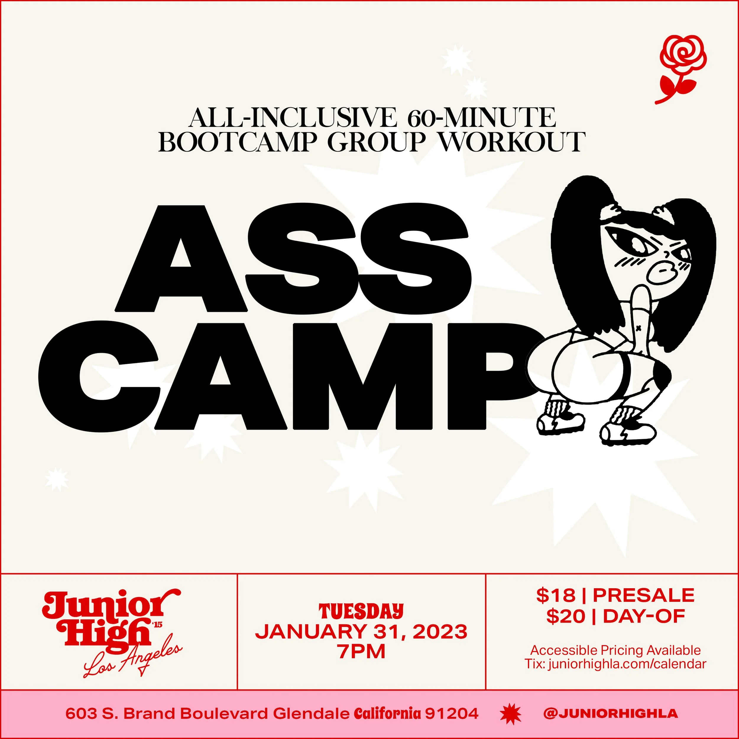 WORKOUT | $18 presale, $20 at door | ALL AGES + SKILL LEVELS | ASS CAMP is an all-inclusive 60 minute bootcamp group workout class led by Kat Matutina with focus on ass, abs, plus core and overall strength. Utilizing special resistance bands for the duration of the class, combined with plyometrics, toning balls, battle ropes and kettle bells. Soundtrack to class includes jersey club, baltimore club, dancehall and afrobeats, R&B, chicago house, booty bass, and rap. All bodies, genders, levels, and ages welcome! Organic pre-workout hydration station included with optional post-workout plant-based smoothies available as well.