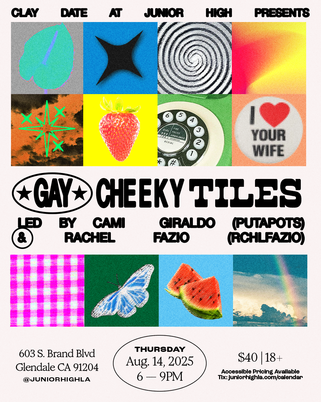 GUEST ARTIST WORKSHOP | $40 | 18+ | Get crafty (and a little saucy) with us for this one-night ceramic adventure! Create your own set of three decorative tiles or coasters celebrating the beauty of vintage queer pinups, self-love, and sex-positive art. Join local artists Camila and Rachel in this fun surface design workshop!