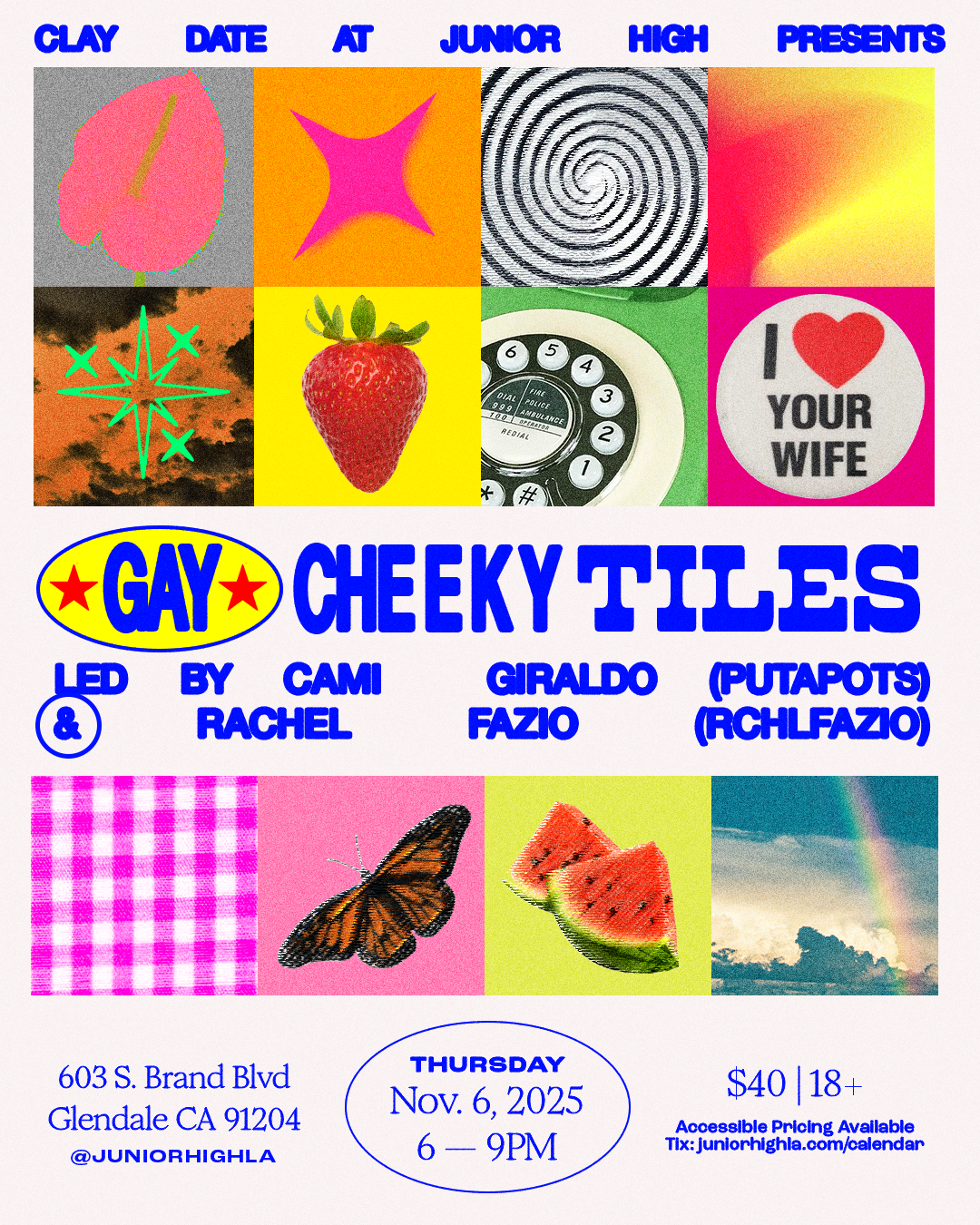GUEST ARTIST WORKSHOP | $40 | 18+ | Get crafty (and a little saucy) with us for this one-night ceramic adventure! Create your own set of three decorative tiles or coasters celebrating the beauty of vintage queer pinups, self-love, and sex-positive art. Join local artists Camila and Rachel in this fun surface design workshop!
