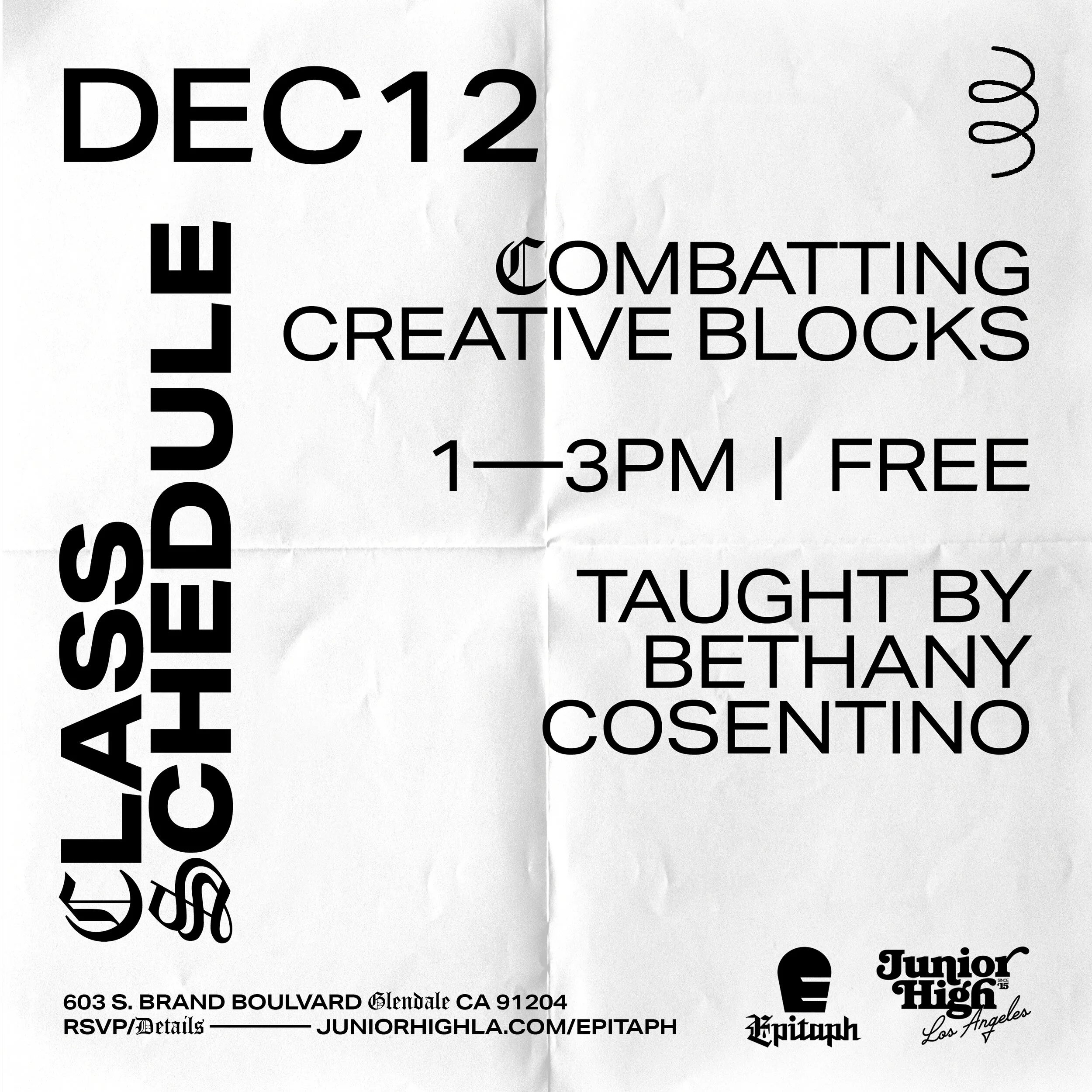 WORKSHOP | FREE | ALL AGES | Bethany Cosentino is one half of the critically acclaimed music group Best Coast. Since 2009, Best Coast has released 4 studio albums garnering commercial success worldwide. Join us for a workshop on pushing through creative blocks, setting yourself up for success, and fighting the urge to give up.