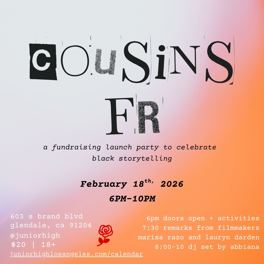 SCREENING | $20 | 18+ | Join the creators of "Cousins" for a night of celebration and community fundraising to help two black women, plus an entirely female production team, bring their film to life! "Cousins" is a coming of age story about a young girl visiting her incarnated father for the first time, and centers around father daughter dynamics, how incarnation effects families, and how families come together in times of turmoil. Come together with us to celebrate a dream made true, dance the night away, and know that with community, there is nothing we cannot create together.