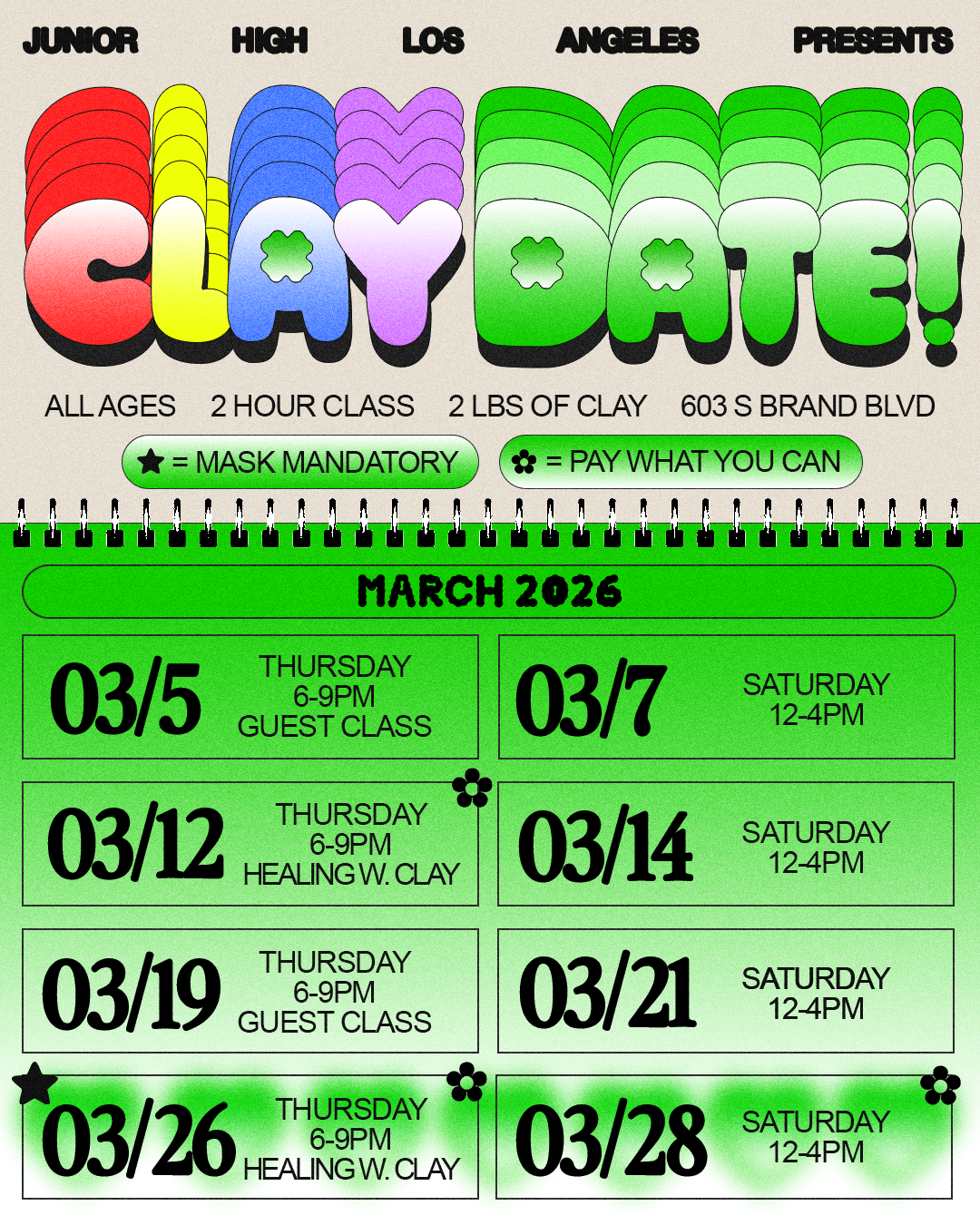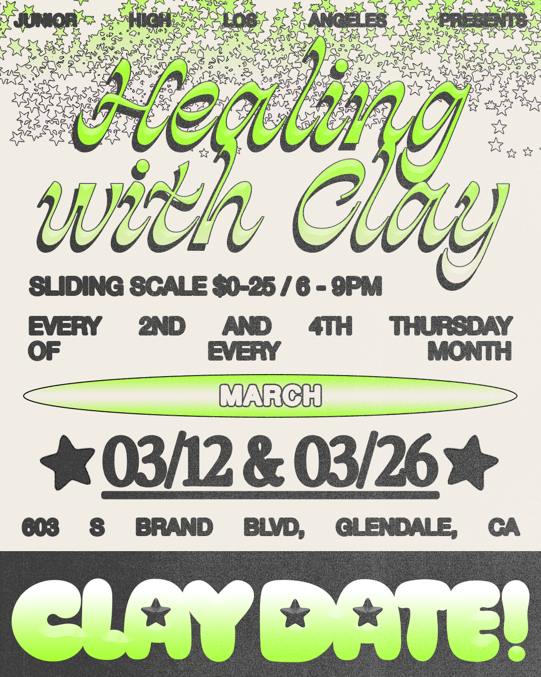 Email claydate@juniorhighla.com for any further questions pertaining to Clay Date!