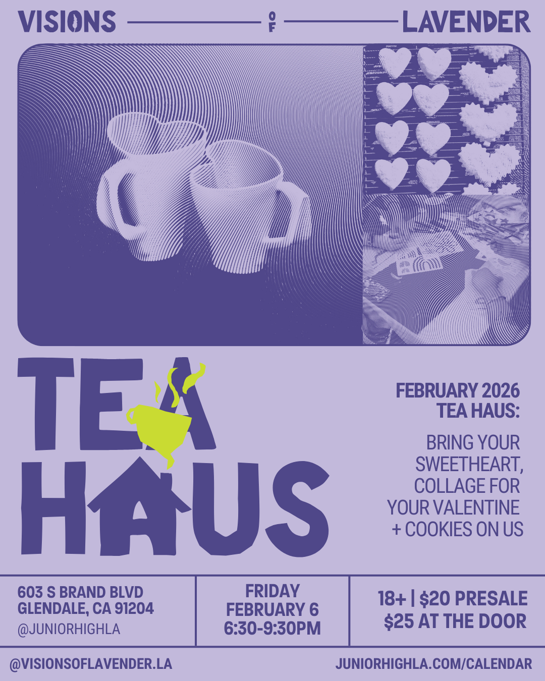 Expect floor mats, cozy lighting, unlimited tea (plus an iced tea mocktail), and mellow house music setting the tone. For this edition, we’ll have Valentine cookies, collage supplies to make your own valentines for you or anyone in your life, and space for grounding, self-love, and honest conversation.