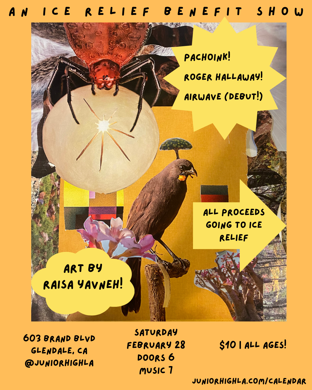 Reading & Fundraiser | $10 | ALL AGES | Dance Eclipse is ¡A Dance Party for all zinesters & pigeon-lovers! Valley-heads of Drifter Zine are celebrating 5 years of zine-making! Based in the San Fernando Valley, since 2020, Madi & Iván have edited issues full of visual art, poetry, & fiction/non-fiction from artists based in the 818 and beyond. Their 10th issue will be out in Winter of 2026 under the theme, Kallifornication. Proceeds from this event will be supporting the printing of their next issue. Come support your local zinemakers and hear from contributors and friends of the Drifter block: Angie Sanchez, Paisley, Ivette Ocampo, & Tori Gesualdo, and the rancho-rave beats of DJ Takuache on the decks.