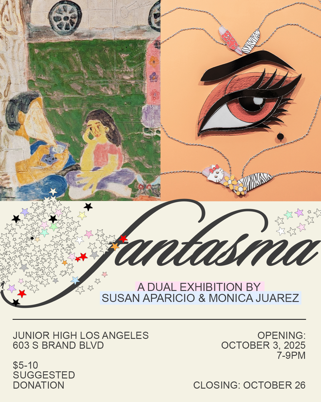 GALLERY | $5-10 SUGGESTED DONATION | ALL AGES | Fantasma brings together the work of Susan Aparicio and Monica Juarez, who both turn to childhood and nostalgia as sites of play and unease. Aparicio reimagines family photographs as connect-the-dots chain drawings, where figures and icons are both present and missing altogether. Juarez’s ceramic tiles draw from pop culture and fairytales, exposing the soft promises of nostalgia and the haunting reach of capitalism. Together, their works treat memory as a ghostly companion.